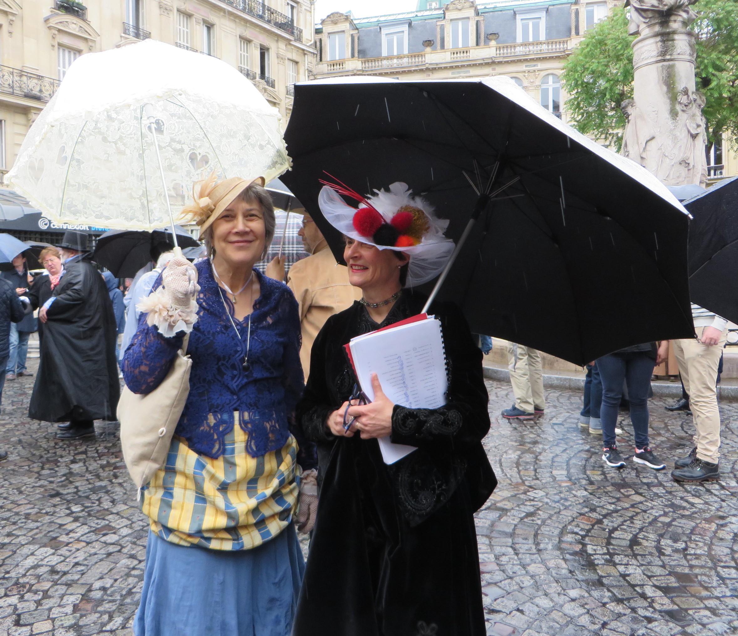 Dimanche 22 mai, la Goguette des Machins Chouettes était invitée au Charivari organisé par le Conseil de Quartier Pigalle-Martyrs, dans le 9ème arrondissement de Paris. On était tous invités à venir habillés dans l’esprit du quartier au 19ème siècle. En dépit du temps très pluvieux ce fut une réussite. Le défilé se fit en chantant, grâce à François des Machins Chouettes et ses carnets de chants. Il s’était déjà illustré la veille à Saint-Ouen ! Merci à Didier, Mariella, et tous leurs amis organisateurs du Charivari !